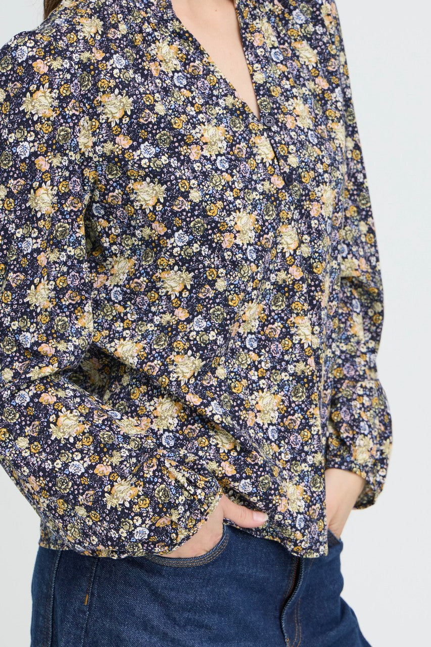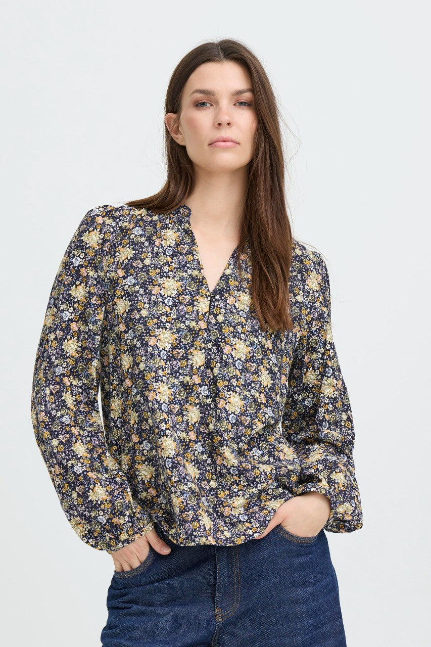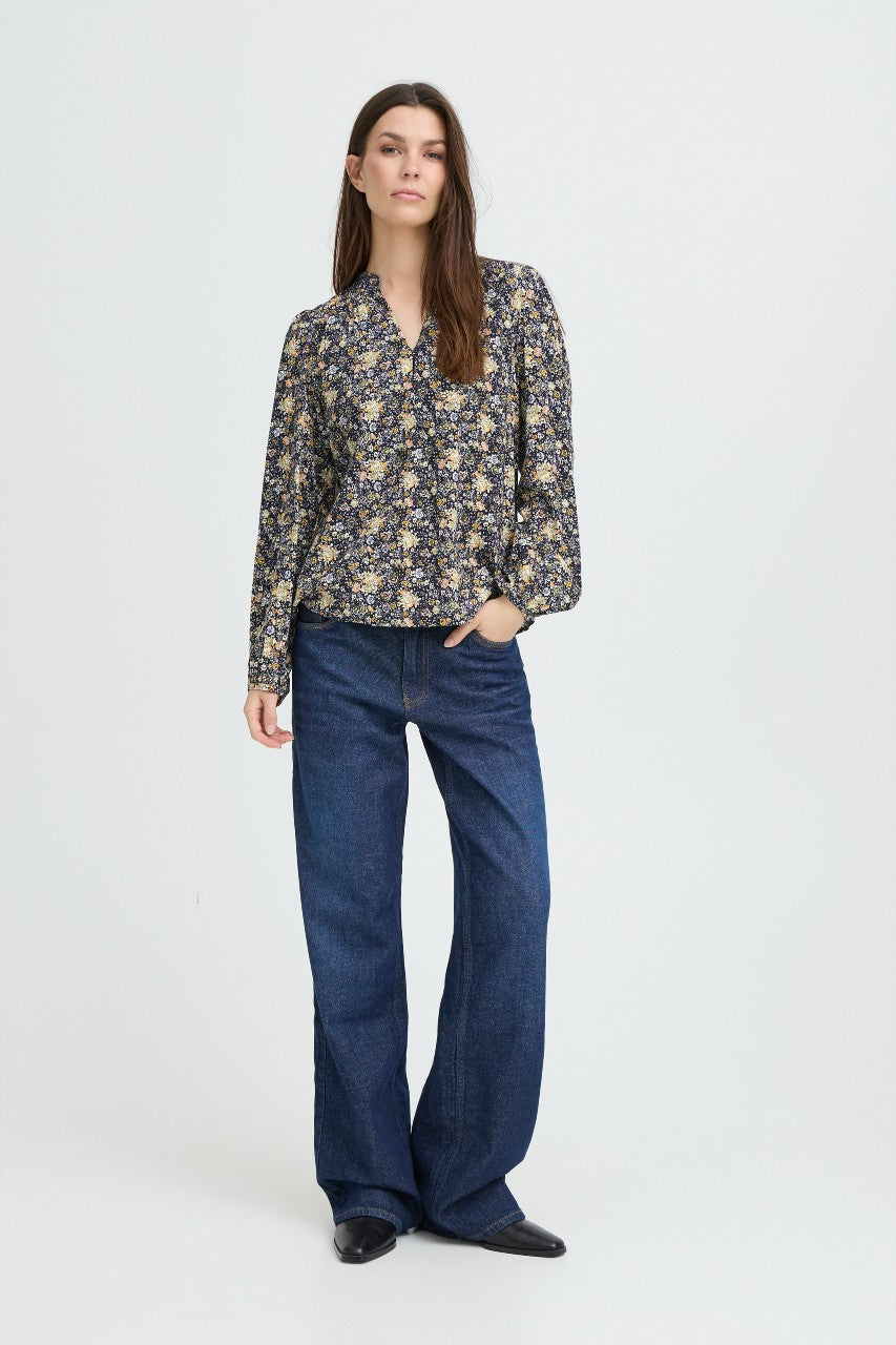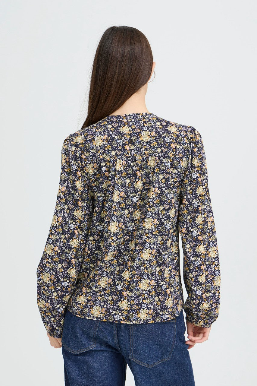 Blus i viscose med många fina detaljer, som knäppning i halsen.