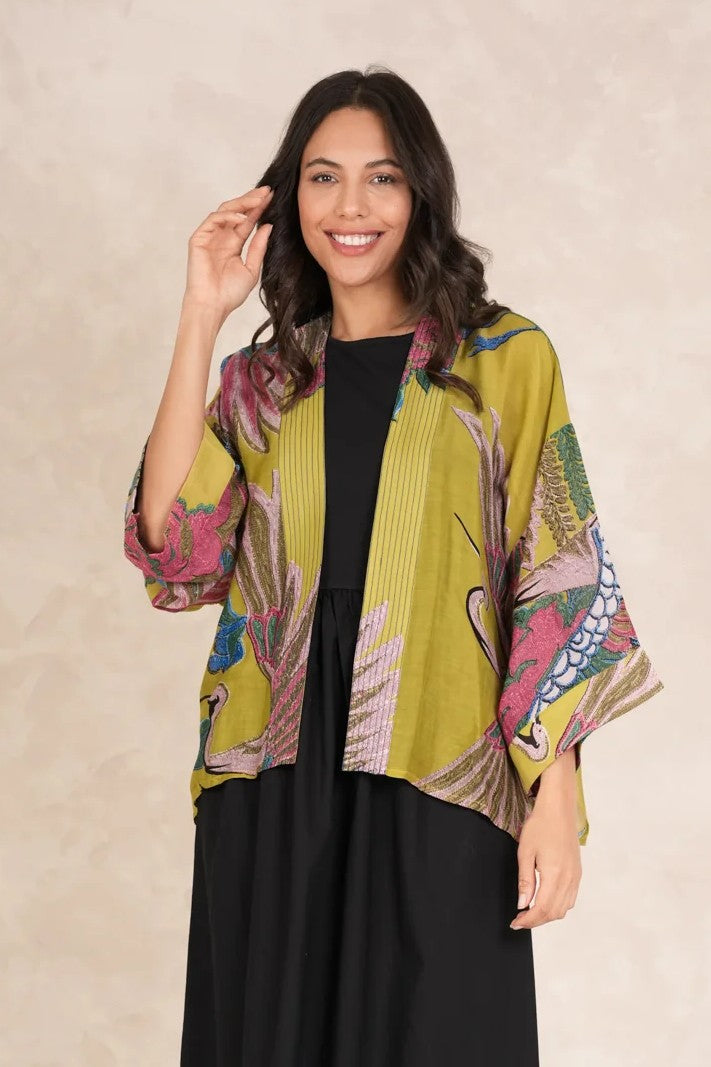 Tunn fin kimono som passar både till klänning och jeans. Den går också att dra omlott och stoppa ner i linningen. Då blir den en festblus.