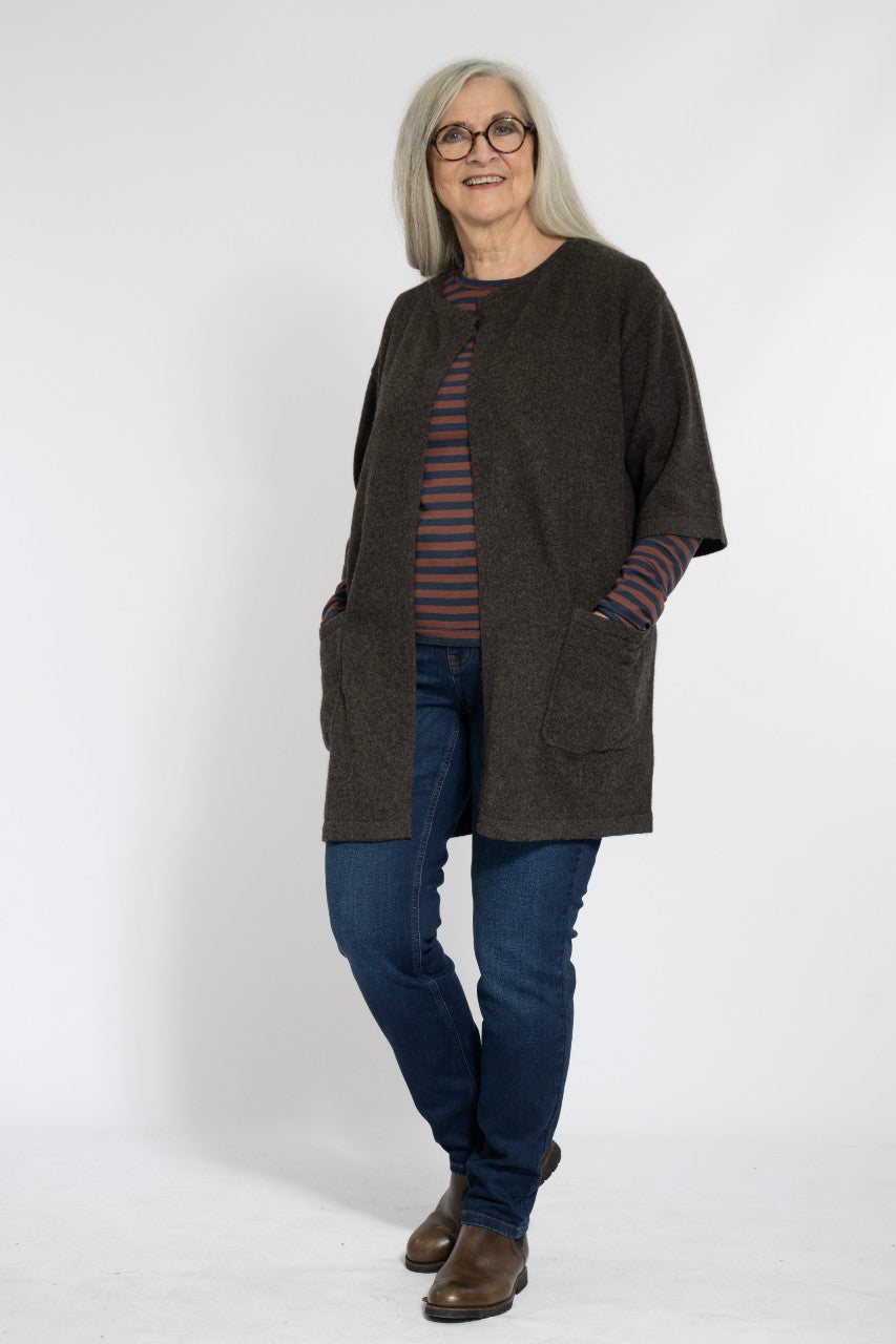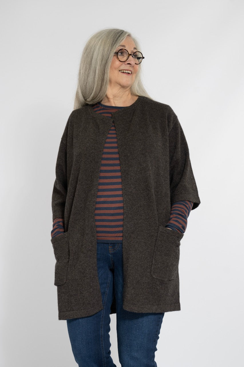 Mjuk och superpraktisk kofta som lir en blandning av väst, kofta och sjal.