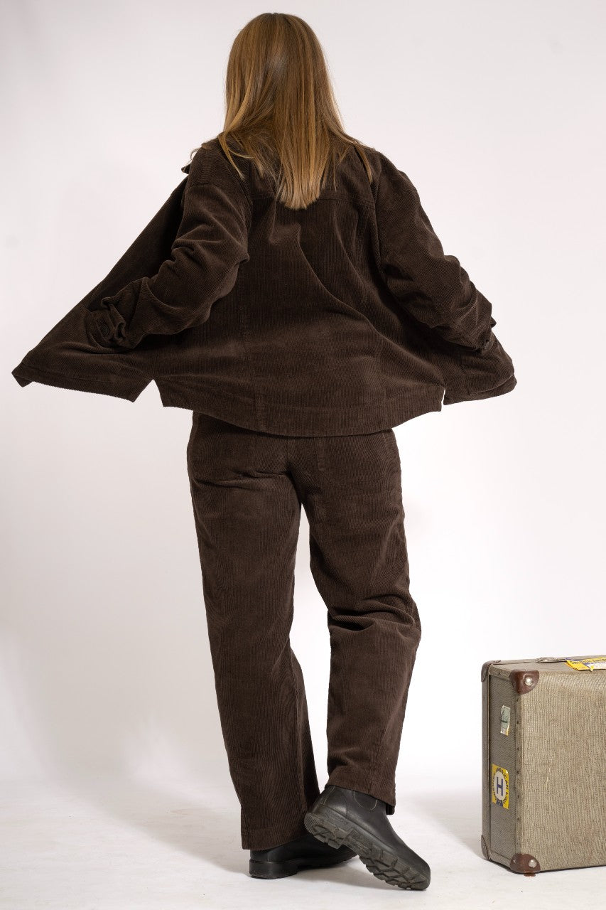 Mjuk skön manchesterbyxa i tvättat tyg. Resår i midjan. Fickor både fram och bak. Benet är sytt lite avsmalnande neråt med sömmar.