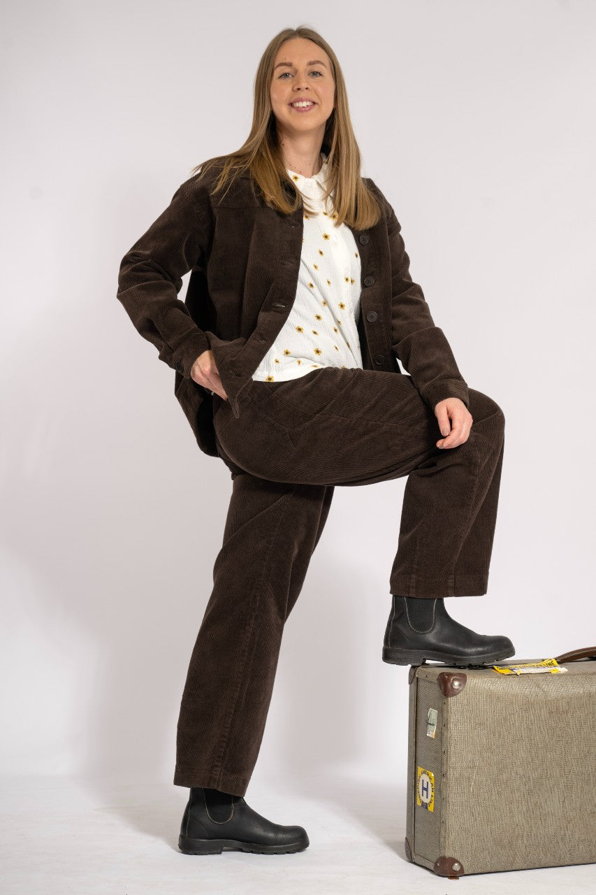 Jacka i stentvättad manchester med fina detaljer. Lite längre bak än fram. Fickor.