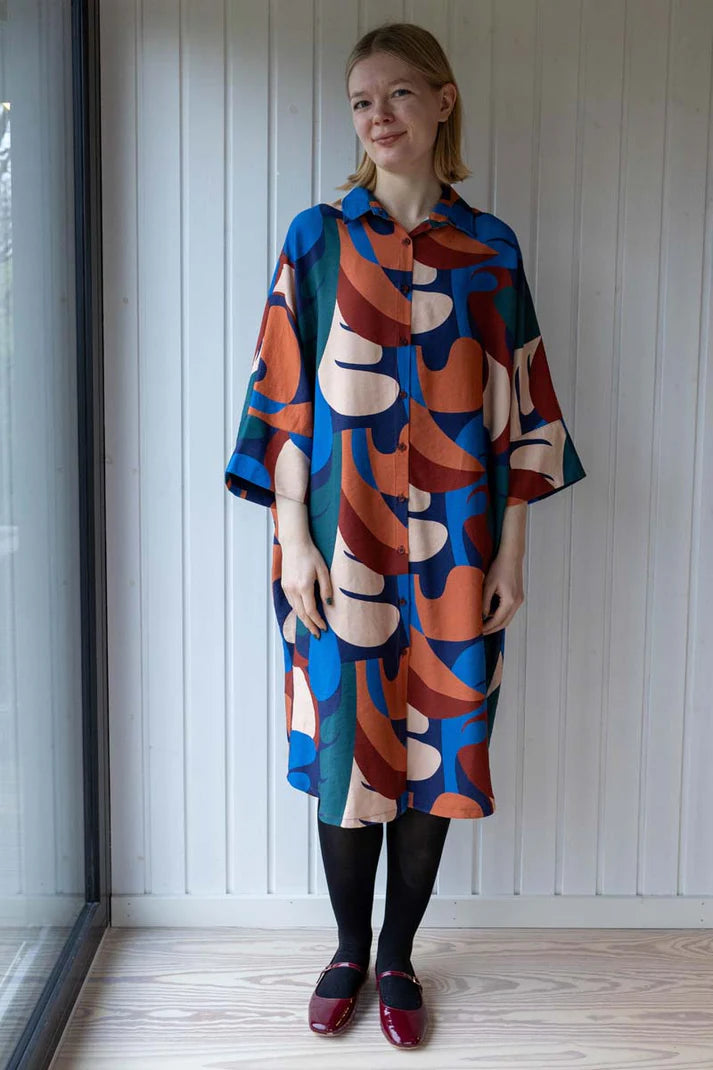 Skjortklänning i vävd, tung viscose. pingvinärm och krage.