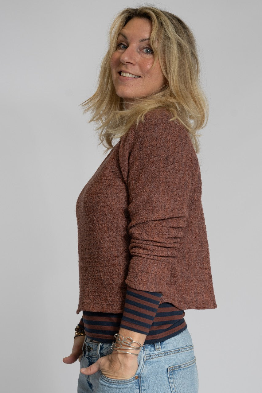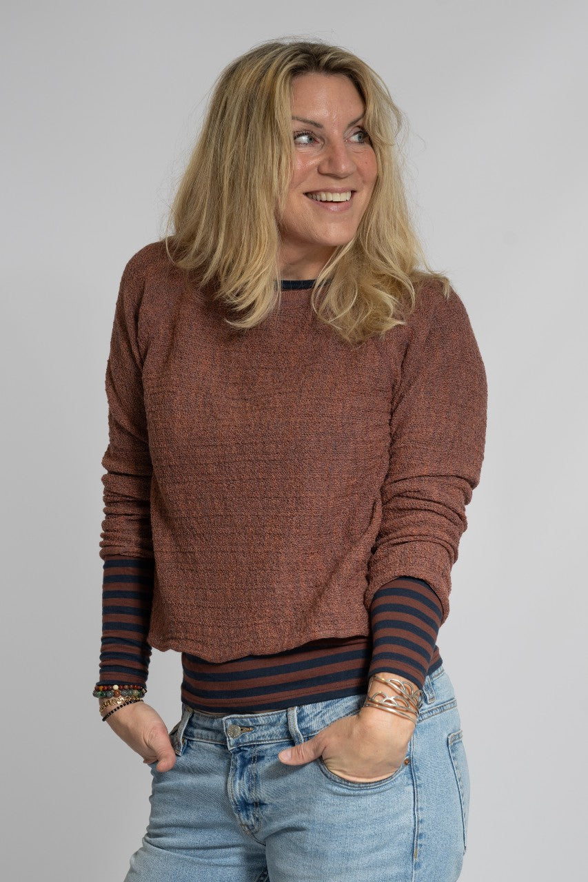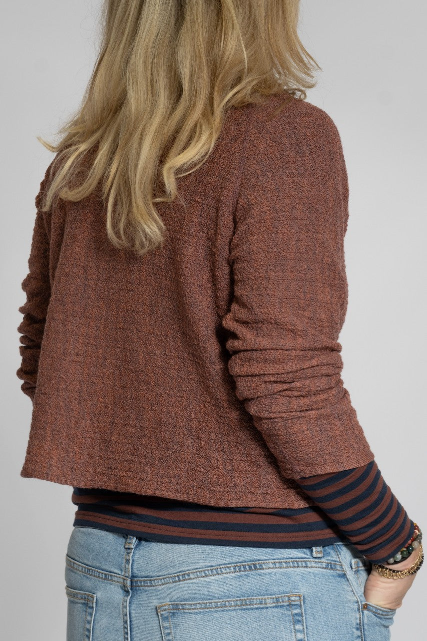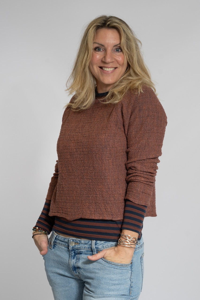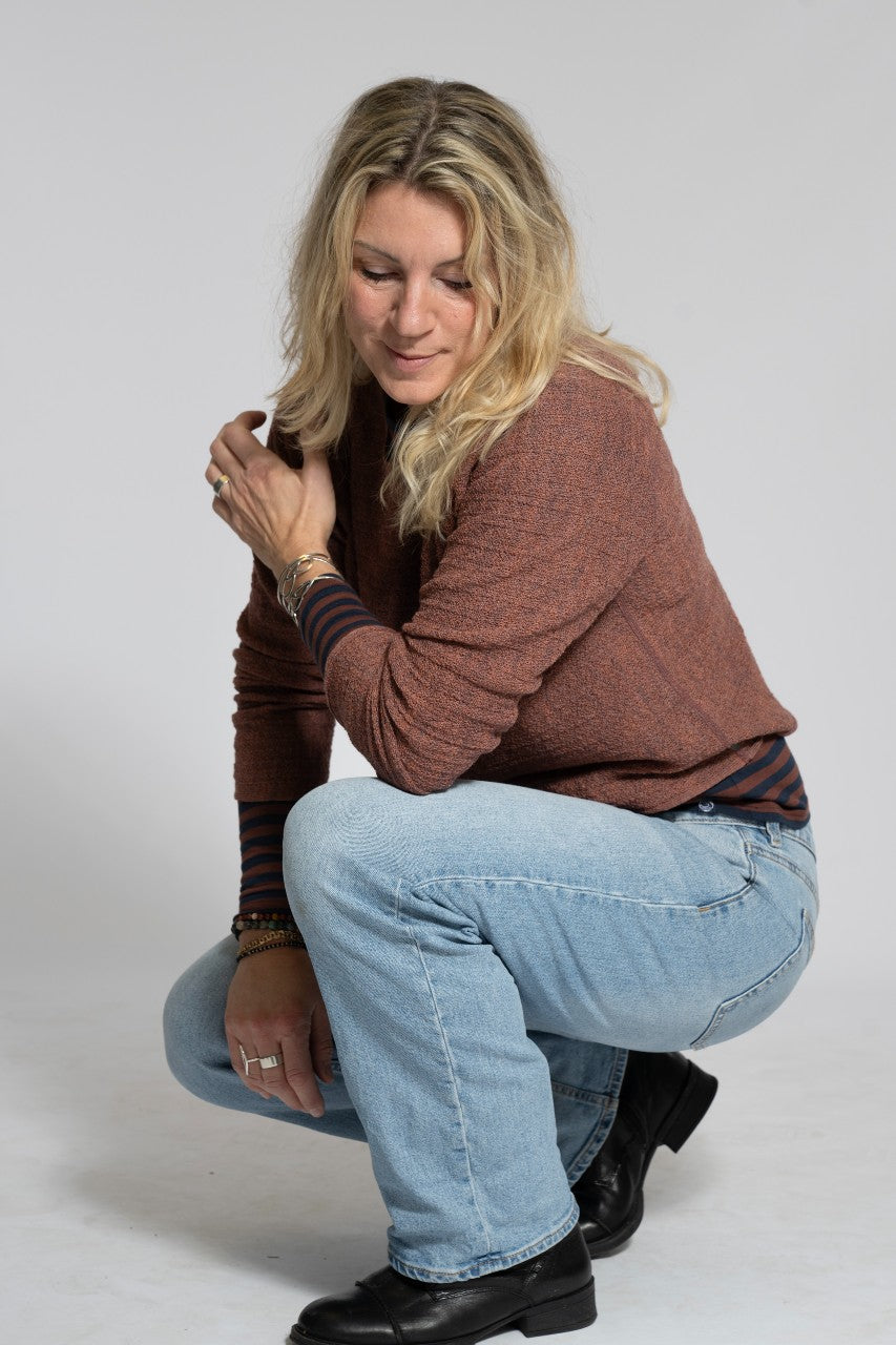 Mosstickad tröja i mjuk ull med raglanärm och fina kantavslutningar. Passar finfint med skjorta under men också som lager ett närmst kroppen.
