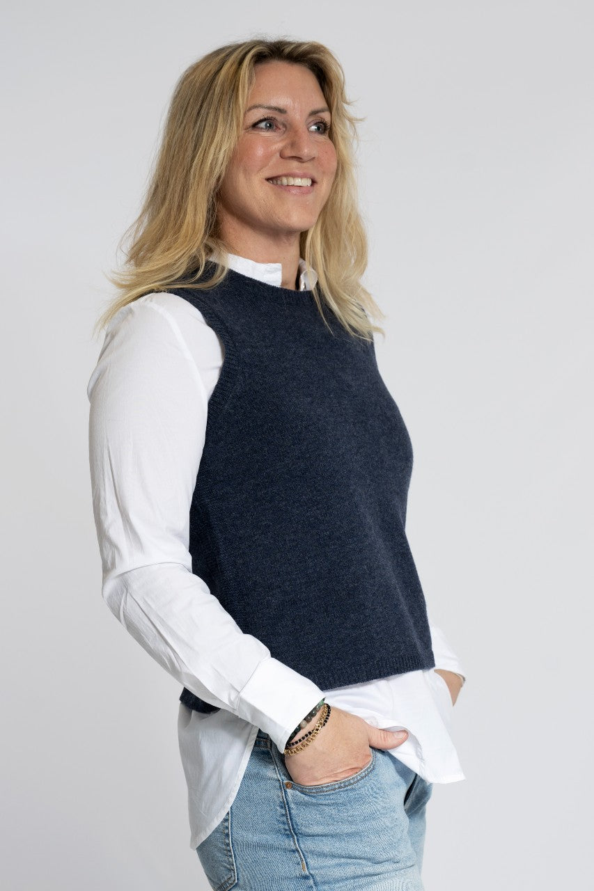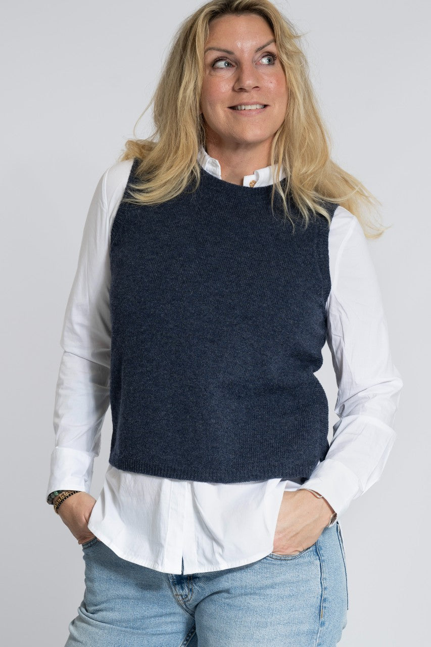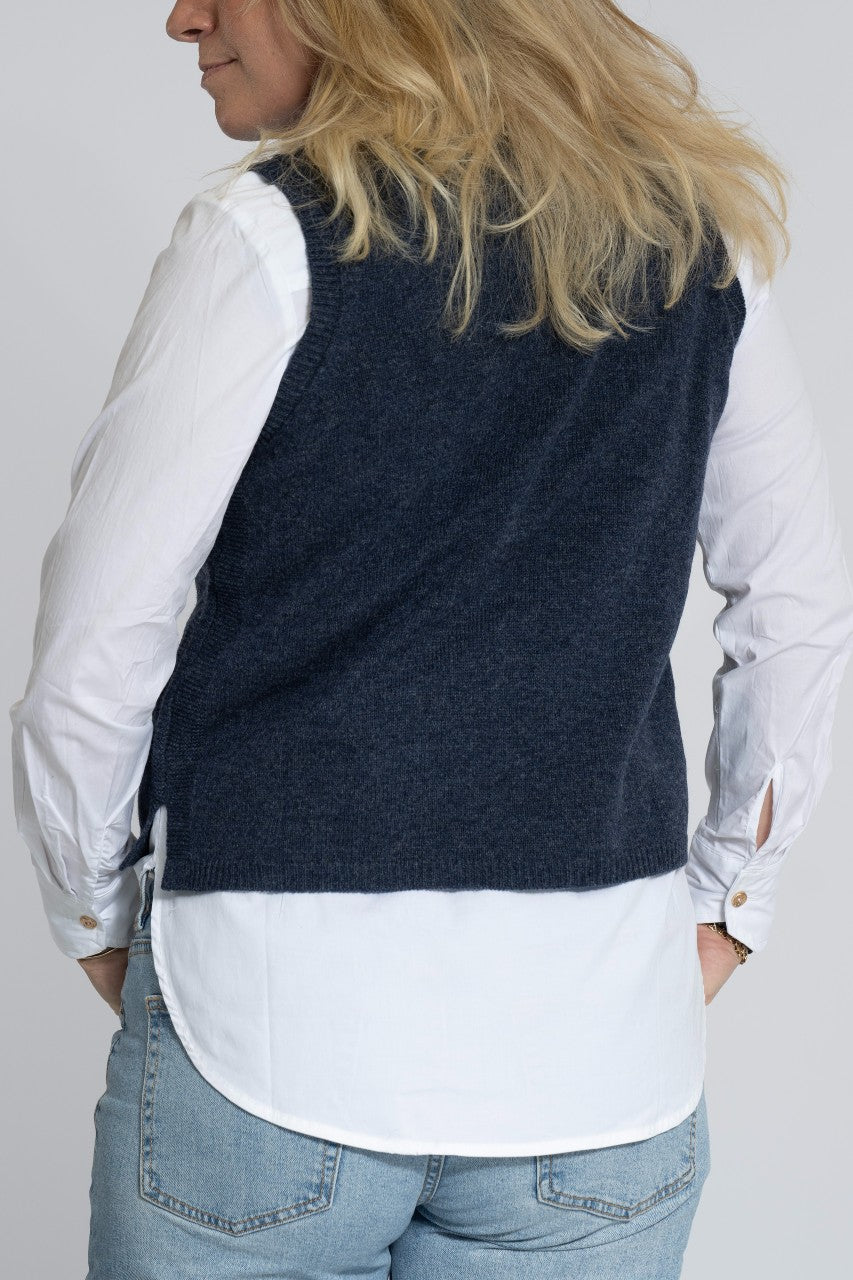 Stickad väst med sprund i sidorna.