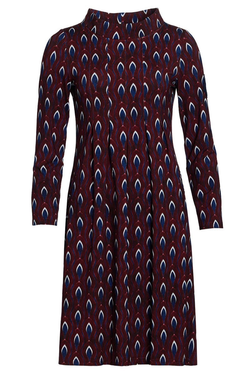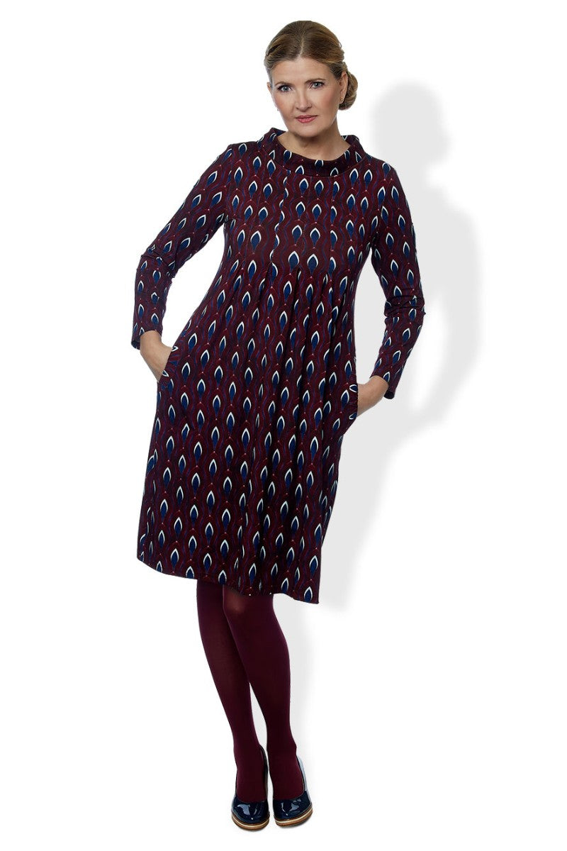 Trikåklänning med fin siluett i den klassiska Alminamodellen. Halskant och fickor. Handvirkad detalj.